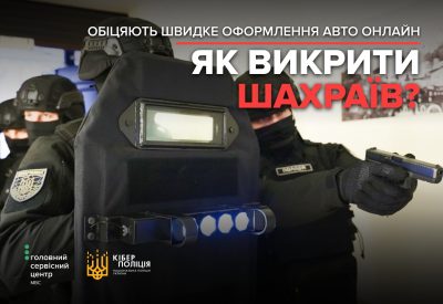 «Вигідна пропозиція купівлі-продажу авто тільки сьогодні. Угоду можна укласти онлайн, офіційно та за лічені хвилини, а документи надішлемо в будь-який куточок України чи світу». Обережно! Головний сервісний центр МВС разом із Департаментом кіберполіції Національної поліції України попереджають. Саме так часто виглядають оголошення із нібито вигідною пропозицією вдалої купівлі, під якою можуть маскуватися шахраї.